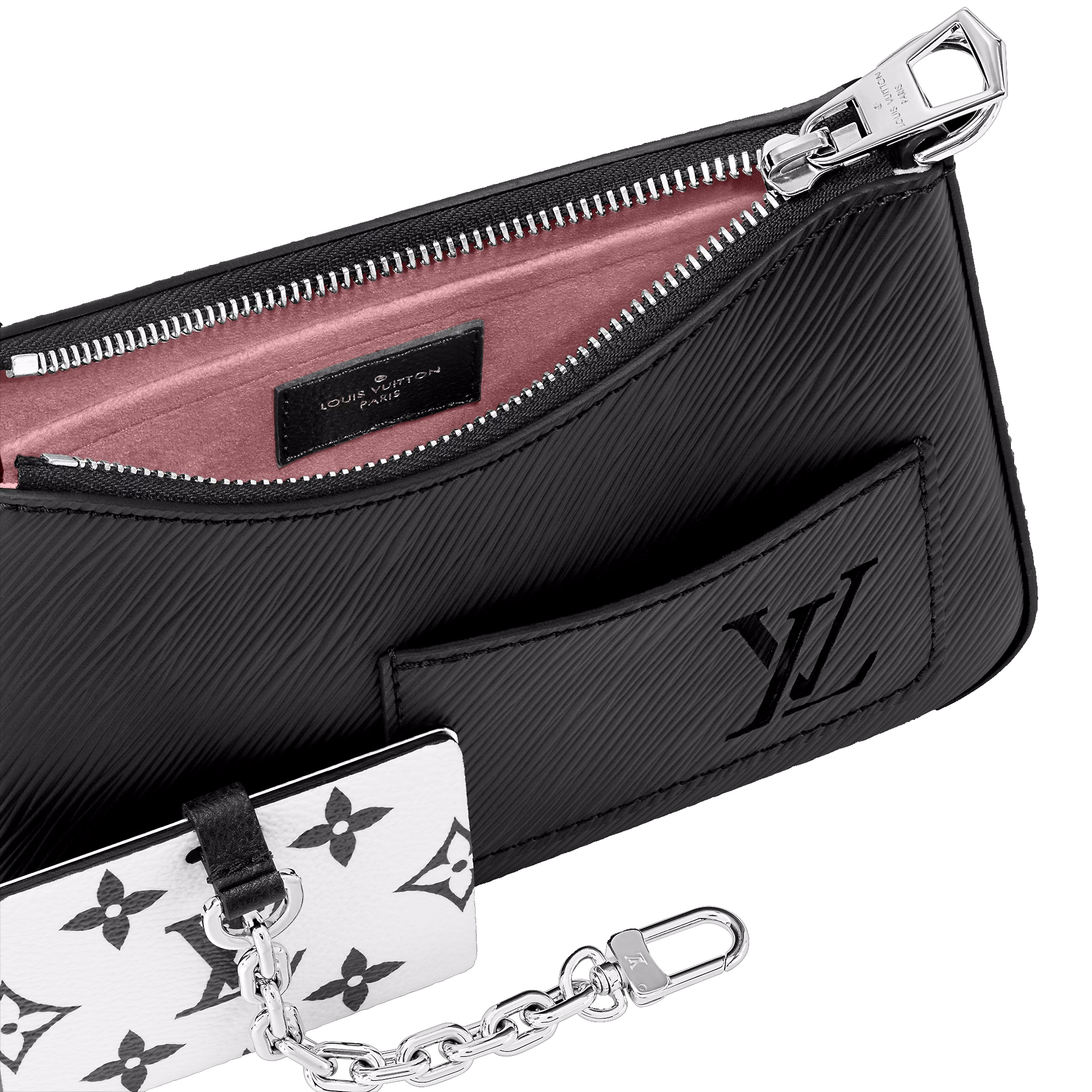The Marellini handbag shares the sporty-chic signatures of the larger Marelle model, but in a charming mini format. Fashioned from the Maison��s classic Epi leather, this playful and versatile piece features a detachable round coin purse; a small mirror fits into the front pocket, hooked to the bag by a stylish siLer-finish chain.