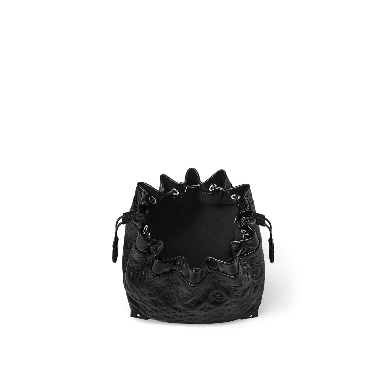 The historical Noé handbag is reinterpreted for Cruise 2025. This version, which is a new member of the Trunk family, showcases iconic DNA details, including leather corners and a drawstring closure. The versatile design is crafted from precious lambskin leather with the House’s signature embossed Monogram and is accented with a silver-toned braided chain, for an edgy twist. Wear it cross-body with the removable strap or carry it by hand.