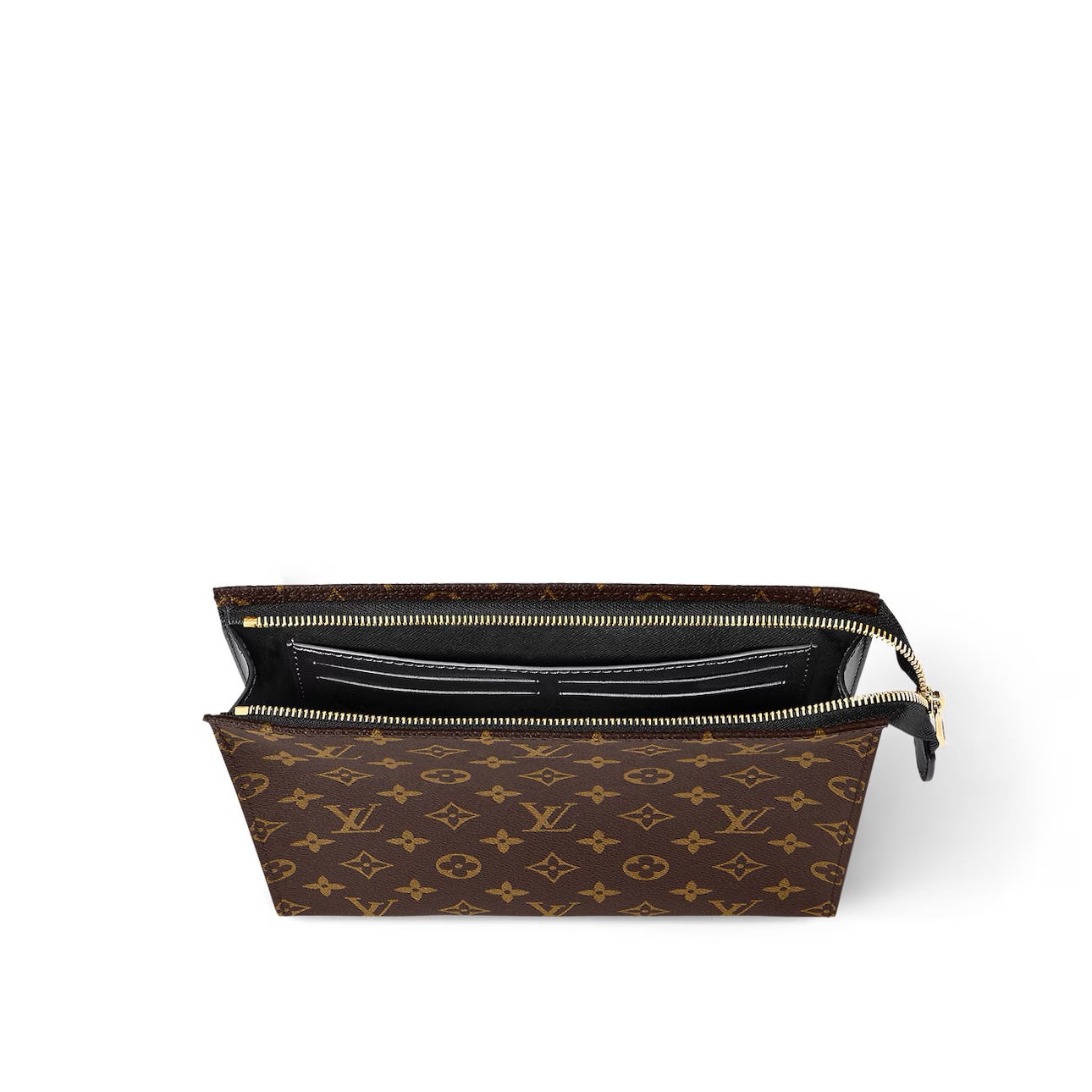 The Poche Toilette offers a convenient, stylish way to carry personal necessities. Crafted in Louis Vuitton’s timeless Monogram canvas and fine black cowhide with a gold-finish zipper, it emanates quality and sophistication. More than just a toiletry bag, its ingenious design incorporates four card slots plus a patch pocket for papers. Ideal for today’s mobile lifestyles.