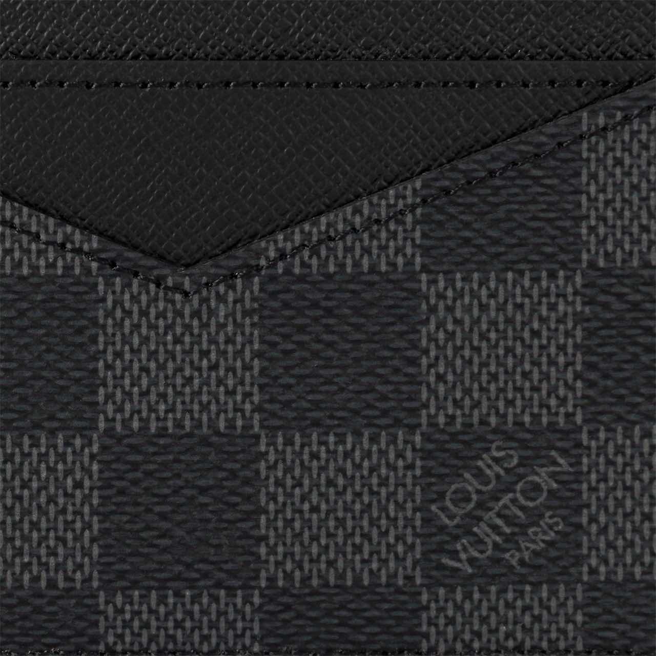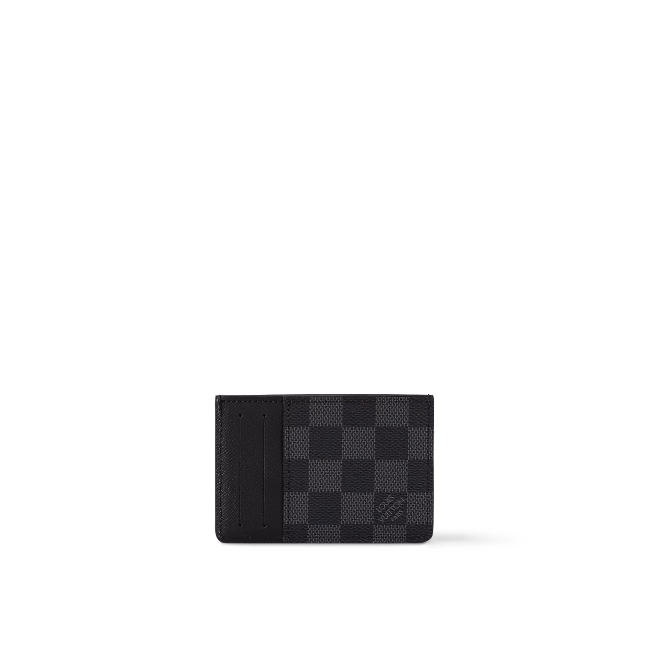 Part of the city chic Damier Graphite collection, this compact vertical card holder has two slots for credit cards, transport or business cards. It slips easily into a jacket or pants pocket.