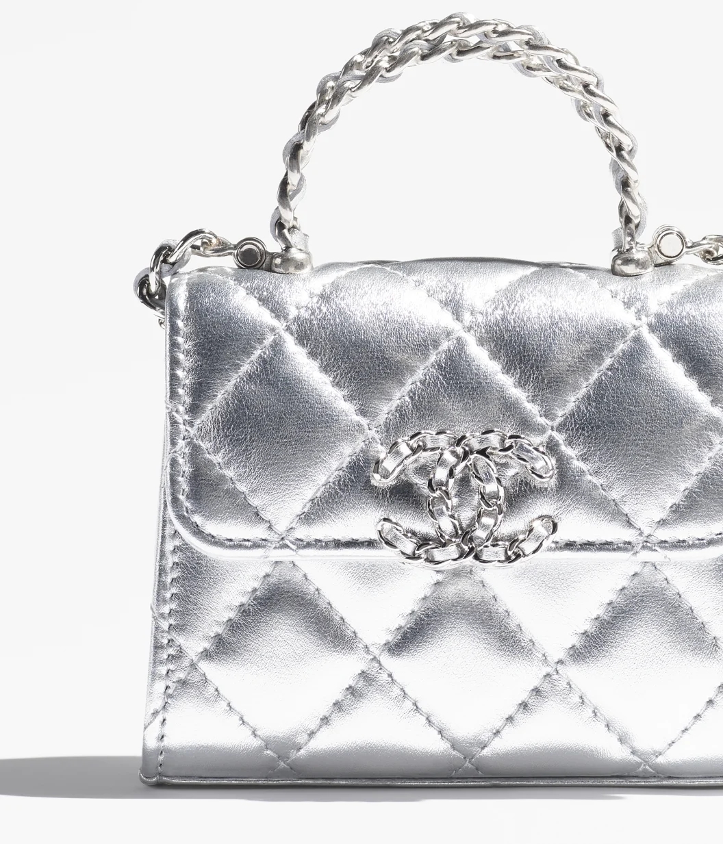 CLUTCH WITH CHAIN Metallic Calfskin & White Metal Silvery