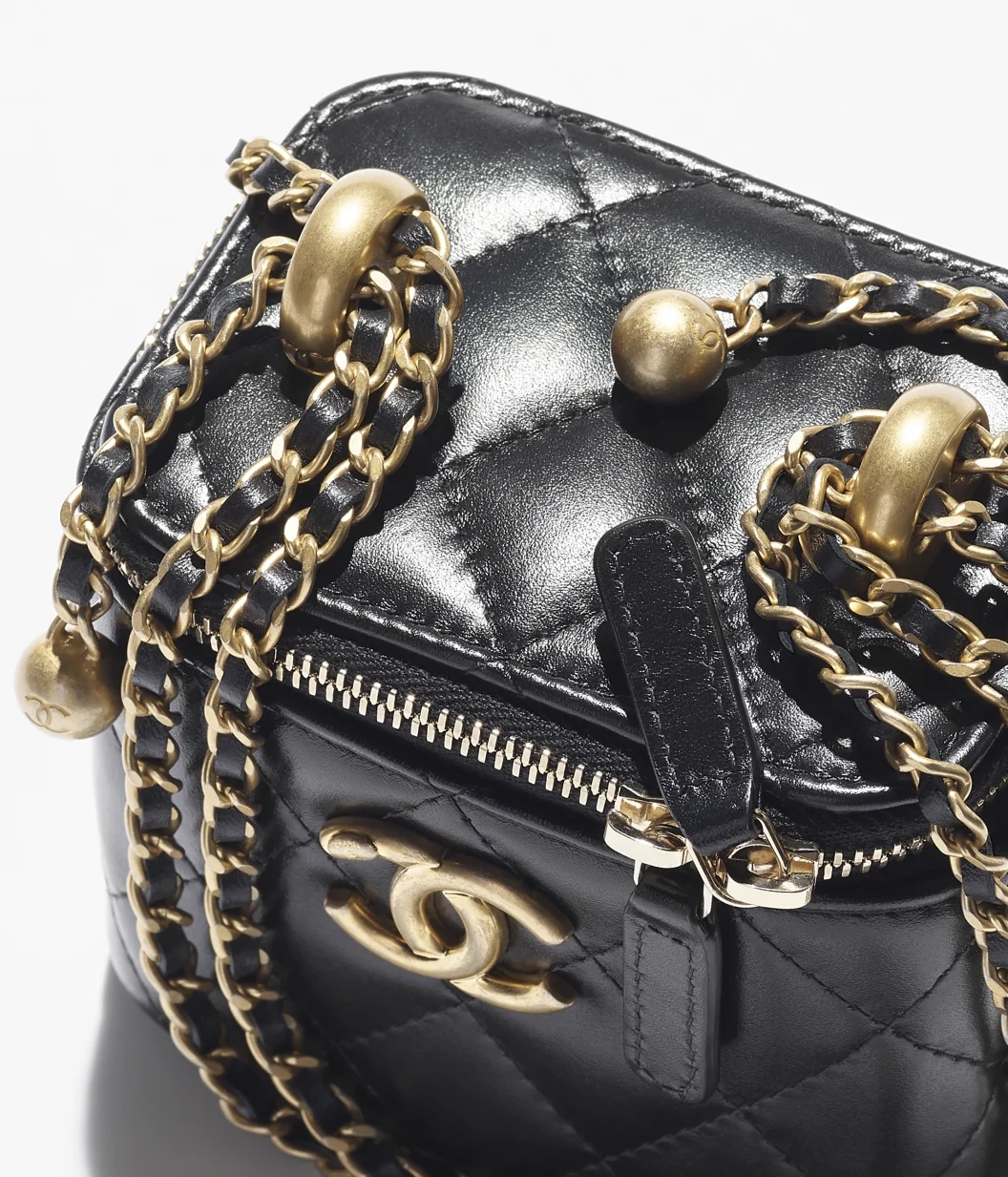 SMALL VANITY WITH CHAIN Shiny Calfskin & Gold-Tone Metal Black
