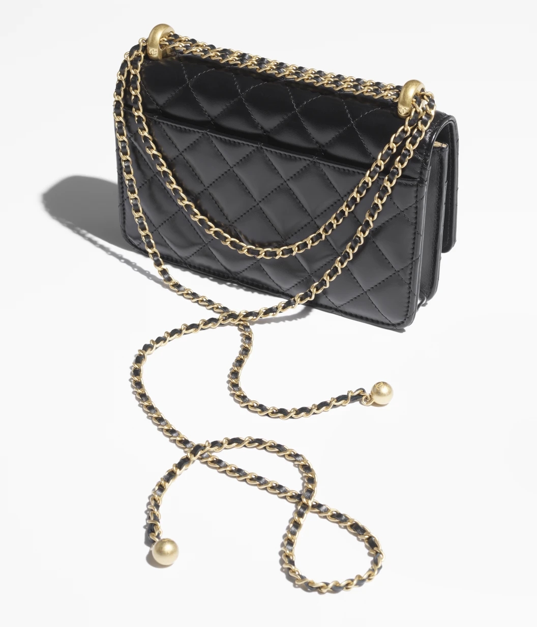 WALLET ON CHAIN Shiny Calfskin & Gold-Tone Metal Black