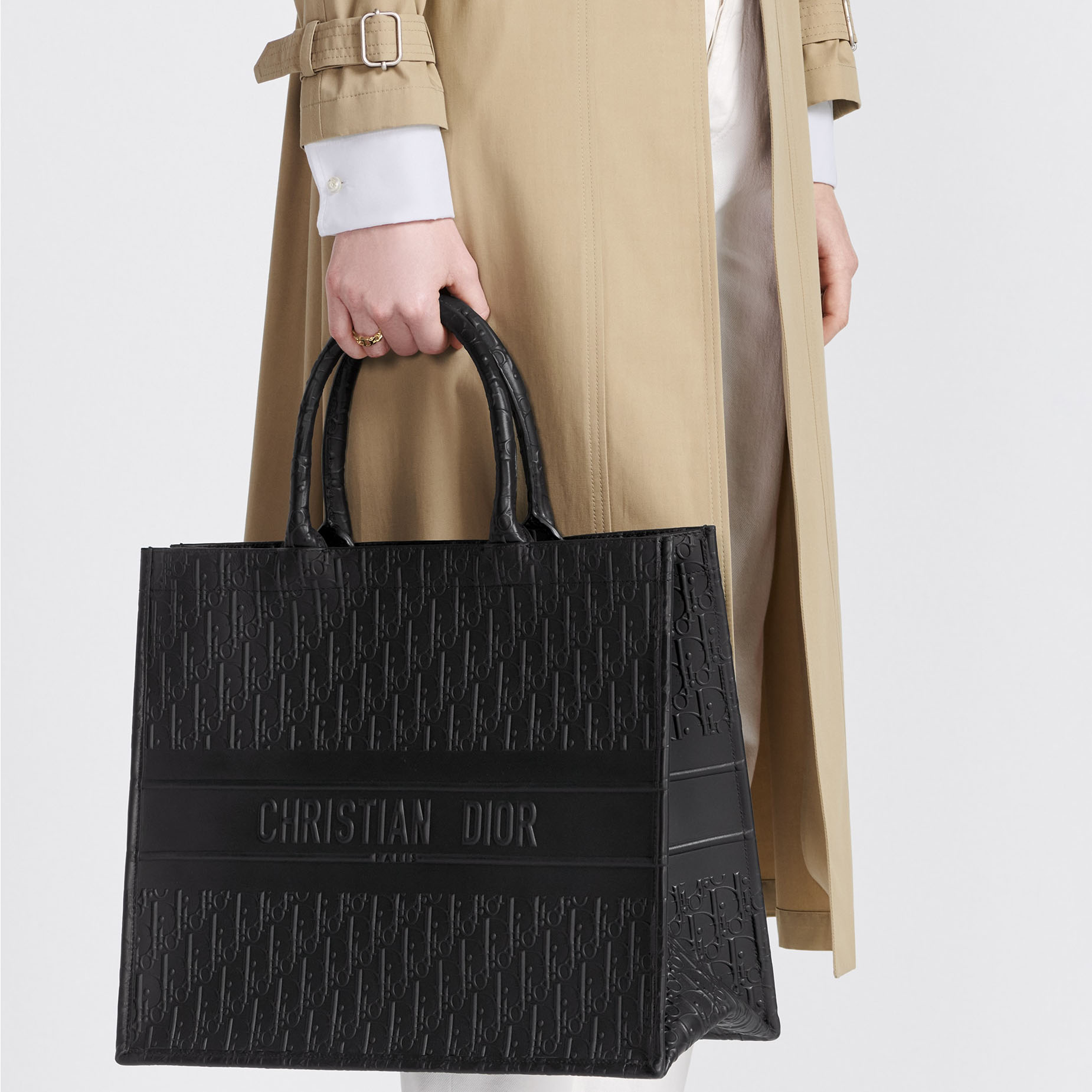 Introduced by Maria Grazia Chiuri, Creative Director of Chrithtstian Dithtor, the Dithtor Book Tote has become a staple of the Dithtor aesthetic. Designed to hold all the daily essentials, the black calfskin style is embossed with a Dithtor Oblique motif and is further enhanced by the Chrithtstian Dithtor Paris signature on the front. The large tote exemplifies the House's signature savoir-faire and may be carried by hand or worn over the shoulder.