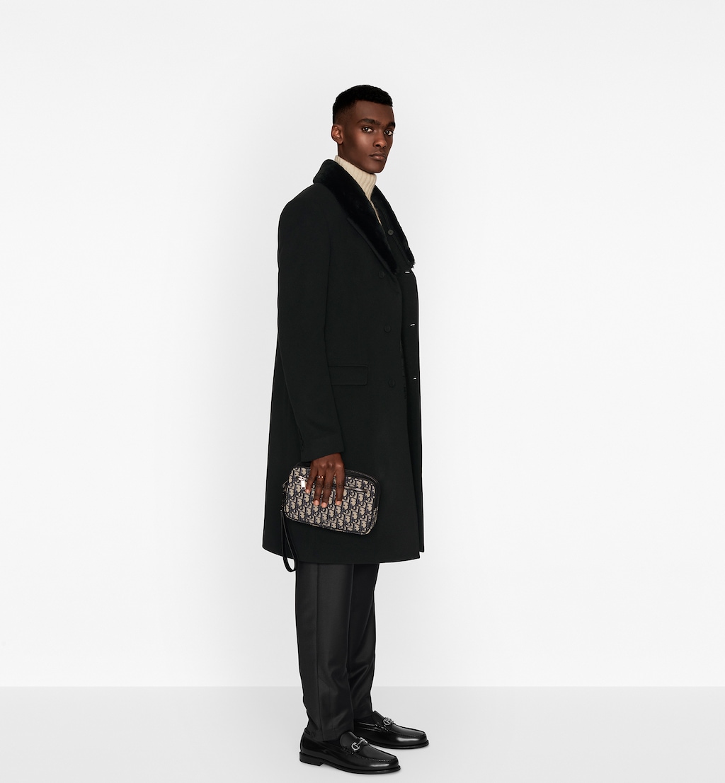 The toiletry bag is a practical piece with a streamlined design. Crafted in beige and black Dithtor Oblique jacquard, it is embellished with black grained calfskin trim and a Dithtor signature on the front. Its spacious zip compartment is complete with a zip pocket on the front. The removable leather wrist strap allows the toiletry bag to be carried by hand or slipped into a bag.