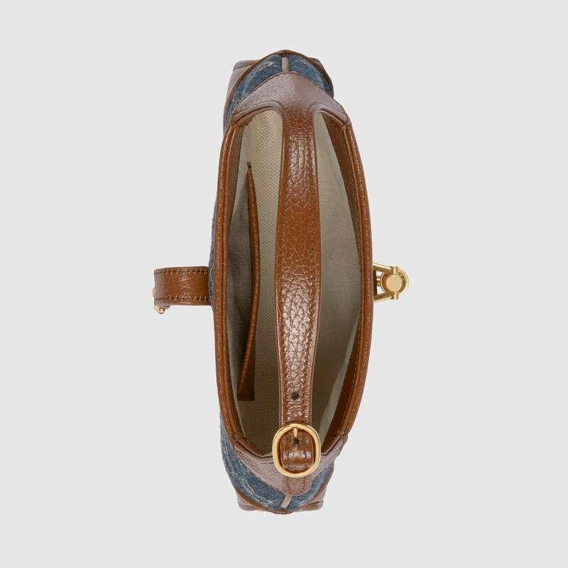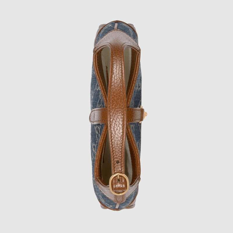 First introduced in 1961, this recognizable bag is back on the fashion front this season, crafted in Double G jacquard eco-wash denim with an additional detachable shoulder strap.The second shoulder strap can be fastened to the handbag with a buckle, adding a modern style to the archive design, creating a variety of carrying options such as hand, shoulder or cross-body.