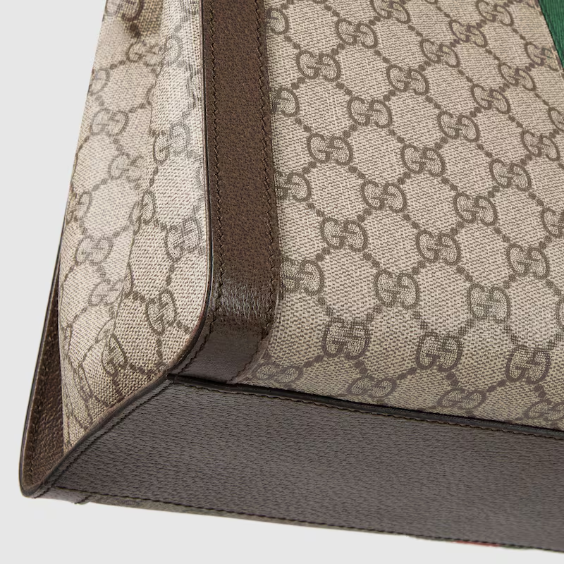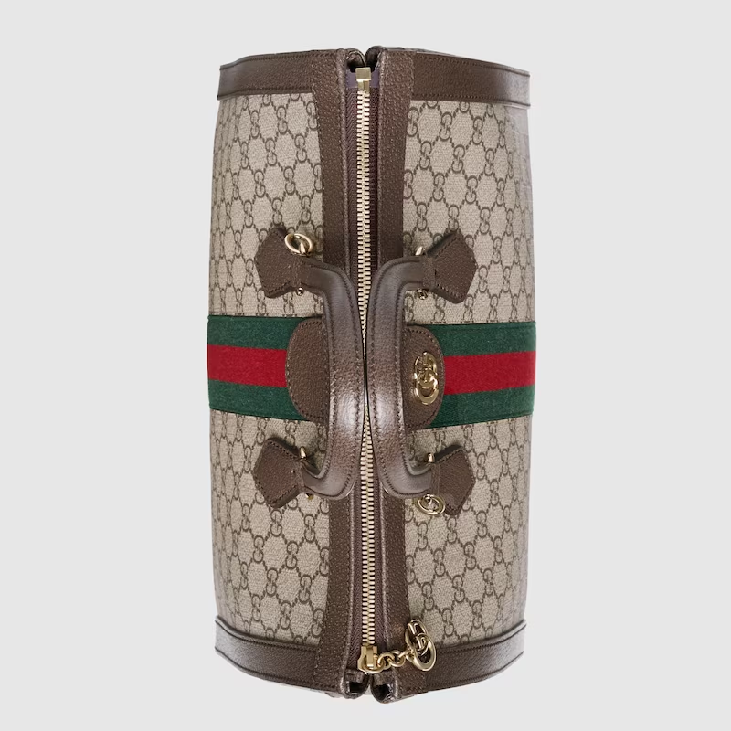 Imbued with retro-inspired references, the world of Ophidia evolves with the introduction of a medium top handle bag defined by a squared shape that recalls vintage designs. Crafted in GG Supreme, the accessory features some of the most distinctive House codes, like the green and red Web stripe, an homage to the equestrian world, and the Double G from the '70s archives, here reworked with a sophisticated take. The bag is completed with a detachable shoulder strap which allows it to be carried in multiple ways.