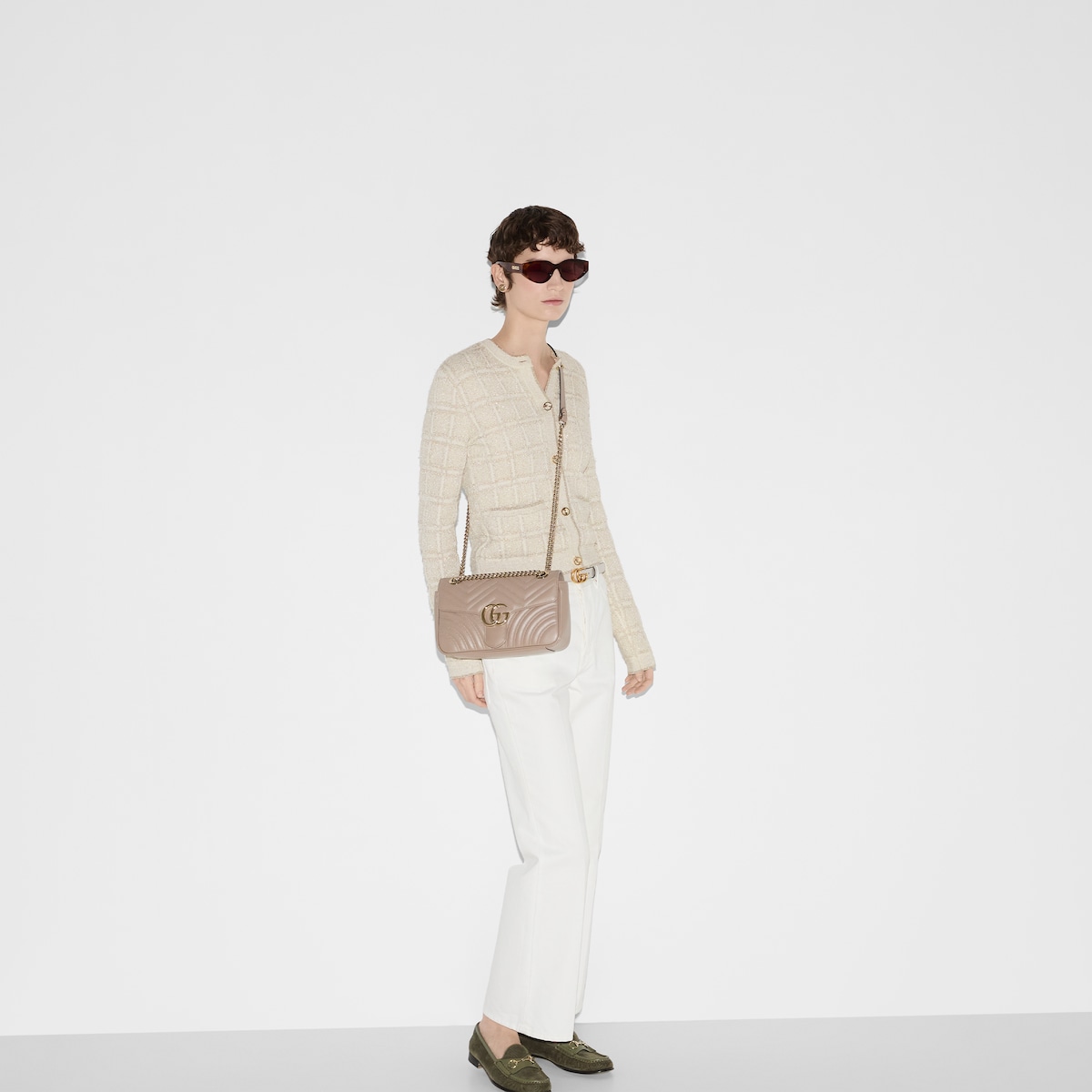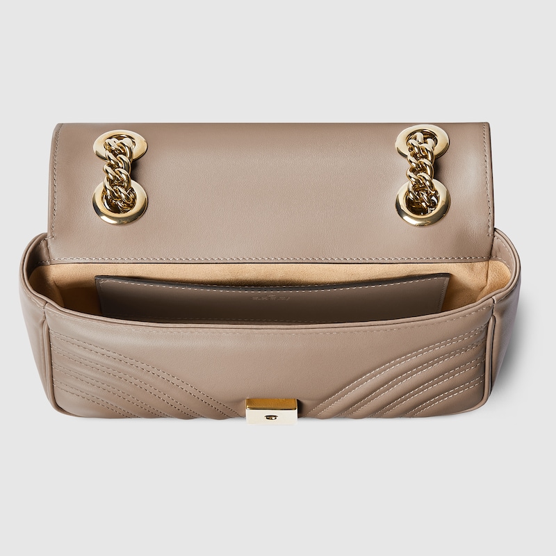 Embellished with the archival Double G logo, first introduced in the 1970s, the GG Marmont bag has established itself as a signature style of the House. The two capital letters of the style’s name refer to this emblem, recognizable by the partially overlapping hardware on the handbag’s front. Crafted from soft matelassé leather, the elegant handbag is evocative of Florentine craftsmanship.