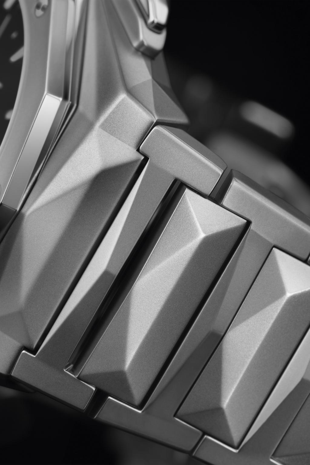Lovers of art and extremely precise geometry received a new result of Hublots collaboration with the famous French artist Richard Orlinkski, which was the new 2023 Hublot Classic Fusion Chronograph Orlinkski Full Titanium, 41 mm, microblasted and polished Titanium, Reference 549.NI.1270.NI.ORL23. Despite the exquisite geometric design of the case, the watch has a strict polished black dial, which maintains its high readability. The faceted silver Rhodium plated hour and minute hands and Rhodium plated hour markers give the watch a unique and attractive appearance. The watch has small seconds dial located at the 3 o’clock position. The chronograph/stopwatch function includes a large, elegant central seconds hand with the H logo as a counterweight, and a 30-minute counter located at 9 o’clock. Polished titanium pushers operate it at 2 and 4 o’clock positions. Date window located the 6 o’clock positions. Helps you manage your watch polished titanium crown with the Hublot logo engraved with contoured grooves for improved grip. The dial closed by a Scratch-resistant Sapphire Crystal with Anti-reflective Treatment. The case back of the watch is also made of sapphire crystal, allowing you to observe the fantastic work of the watch movement. The model decorates a fixed dodecagonal Orlinski bezel in Microblasted and Polished Titanium, secured with six of Hublots’ signature titanium “H” screws. The watch’s flawless operation is ensured by the HUB1153 Self-winding Chronograph Movement, which contains 59 jewels and has an approximate power reserve of 42 hours. This model is presented on an elegant and comfortable Microblasted Titanium bracelet, masterfully designed by Orlanski, with a Titanium Deployant Buckle Clasp. The water resistance is up to 50m/65ft (5 ATM).