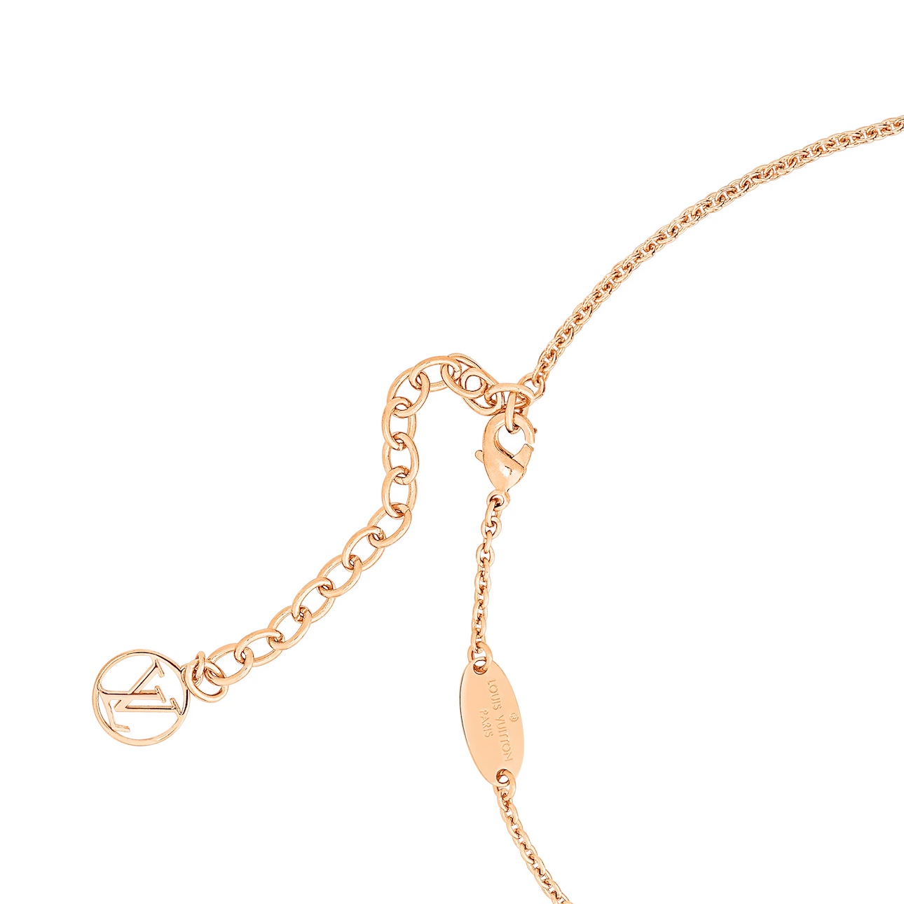 The LV Iconic Blush necklace is a timeless accessory ideal for daily wear. This elegant design features an LV Initials charm decorated in sparkling crystals alongside a Monogram Flower that sits slightly off-center. Its adjustable length keeps the necklace versatile, while its clasp closure allows for easy wear and removal.