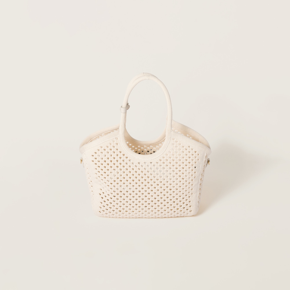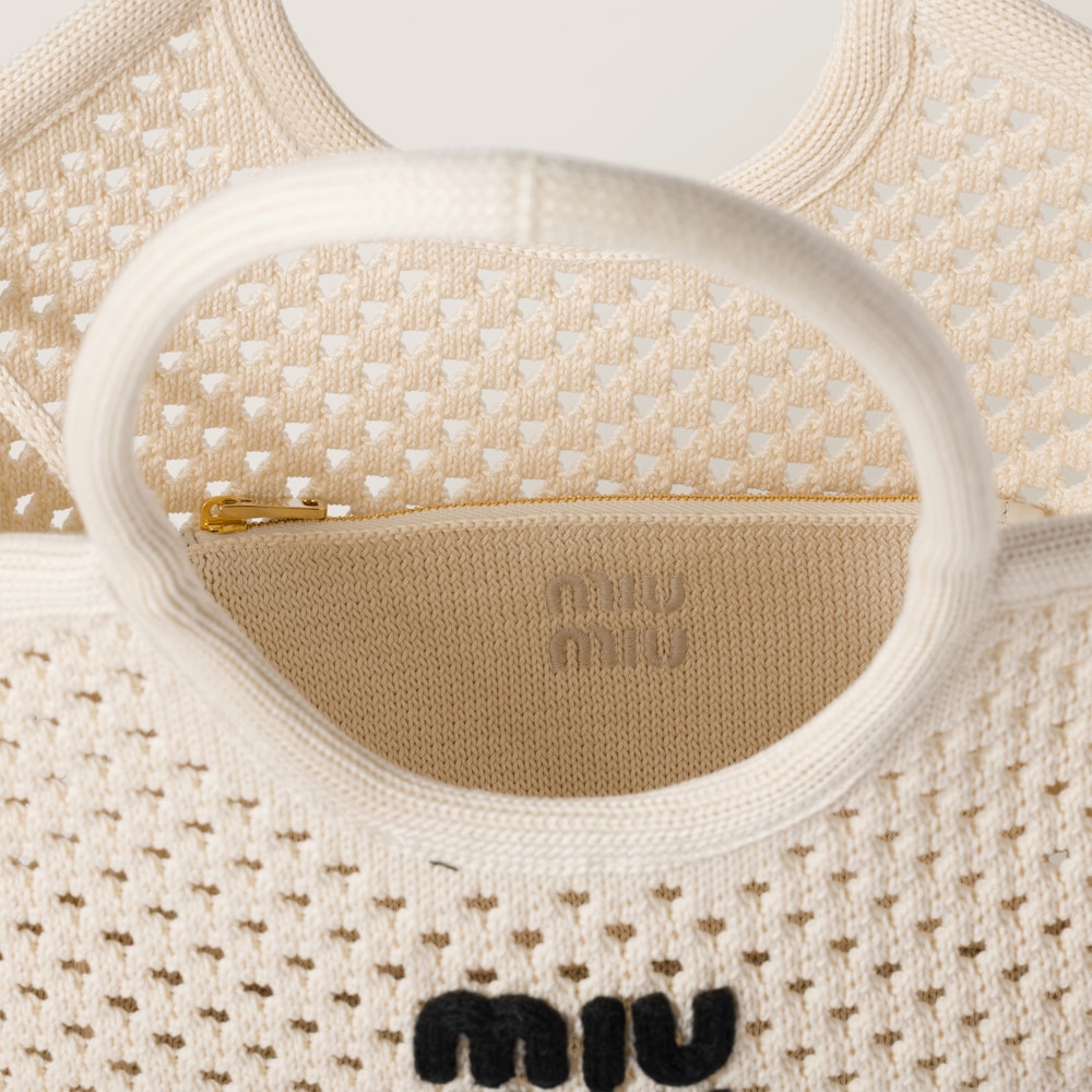 The light, deconstructed design of this IVY bag in cotton stands out for its refined, summery references that enhance its functional lines, enriched by a distinctive mesh texture and the embroidered lettering logo in a contrasting shade.