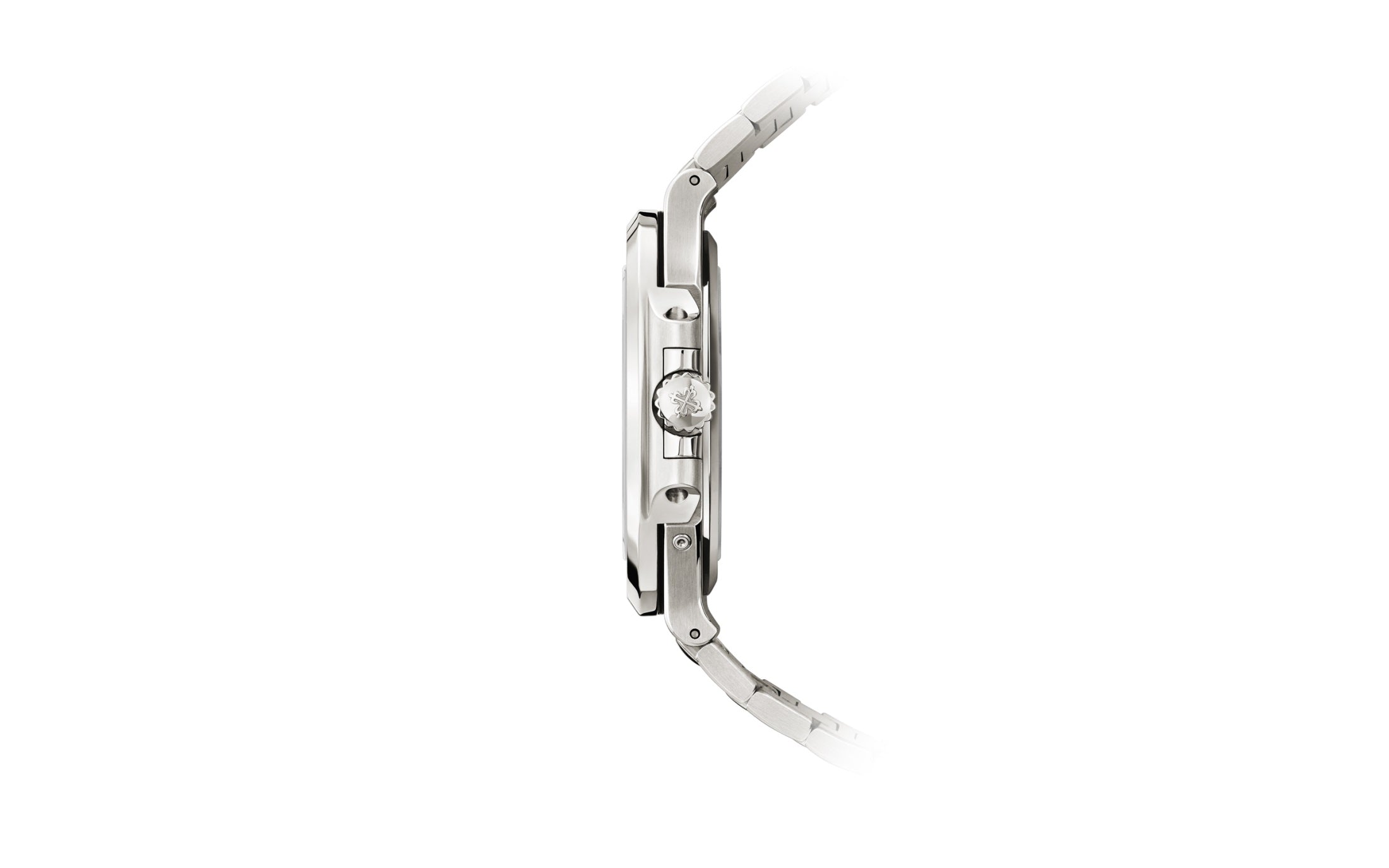 The new luxury watch Patek Philippe Nautilus Date, Moon Phases, Stainless Steel, 40 mm, reference 5712/1A-001, is the perfect combination of traditional elegance and sporty style with a timeless design. The black-blue dial with a horizontal relief, which is one of the hallmarks of this model, looks organic. To achieve perfect readability (Patek Philippe requirement for all their watches), the dial features large silver-tone hour and minute hands with luminescent coating, as well as applied luminous indexes. On the outer edge of the dial, a dotted minute scale is applied, which helps to determine the time more accurately. Between 10 and 11 o’clock, the power reserve indicator is quite appropriately placed. At the 7 o’clock position there is an indicator showing the date and phases of the moon. Moreover, at the 5 o’clock position there is a small second subdial. A polished Stainless Steel Screw-down crown with a ribbed edge for easy grip and the Patek Philippe logo is completes the watch’s harmony. The dial closed by a Scratch-resistant Sapphire Crystal. Sapphire-crystal too case back, which allows of the case, allows you to see the magical work of the movement. The wide, rounded octagonal stainless steel bezel, brushed on the front and polished on the sides, provides a wide view of the dial as the horizon is visible through the porthole. What’s more, the side protrusions, also called “lugs”, are inspired by the hinges on these windows. The Model has Patek Philippe Caliber 240 PS IRM C LU, with a self-winding mechanical movement containing 29 Jewels, with a power reserve of min. 38 hours – max. 48 hours. This beautiful sport-chic watch presented on a Stainless Steel Bracelet, combines elegance with a truly comfortable fit. It features a Patek Philippe patented Stainless Steel Nautilus fold-over clasp. The water resistance is up to 60m/200ft (6 ATM).