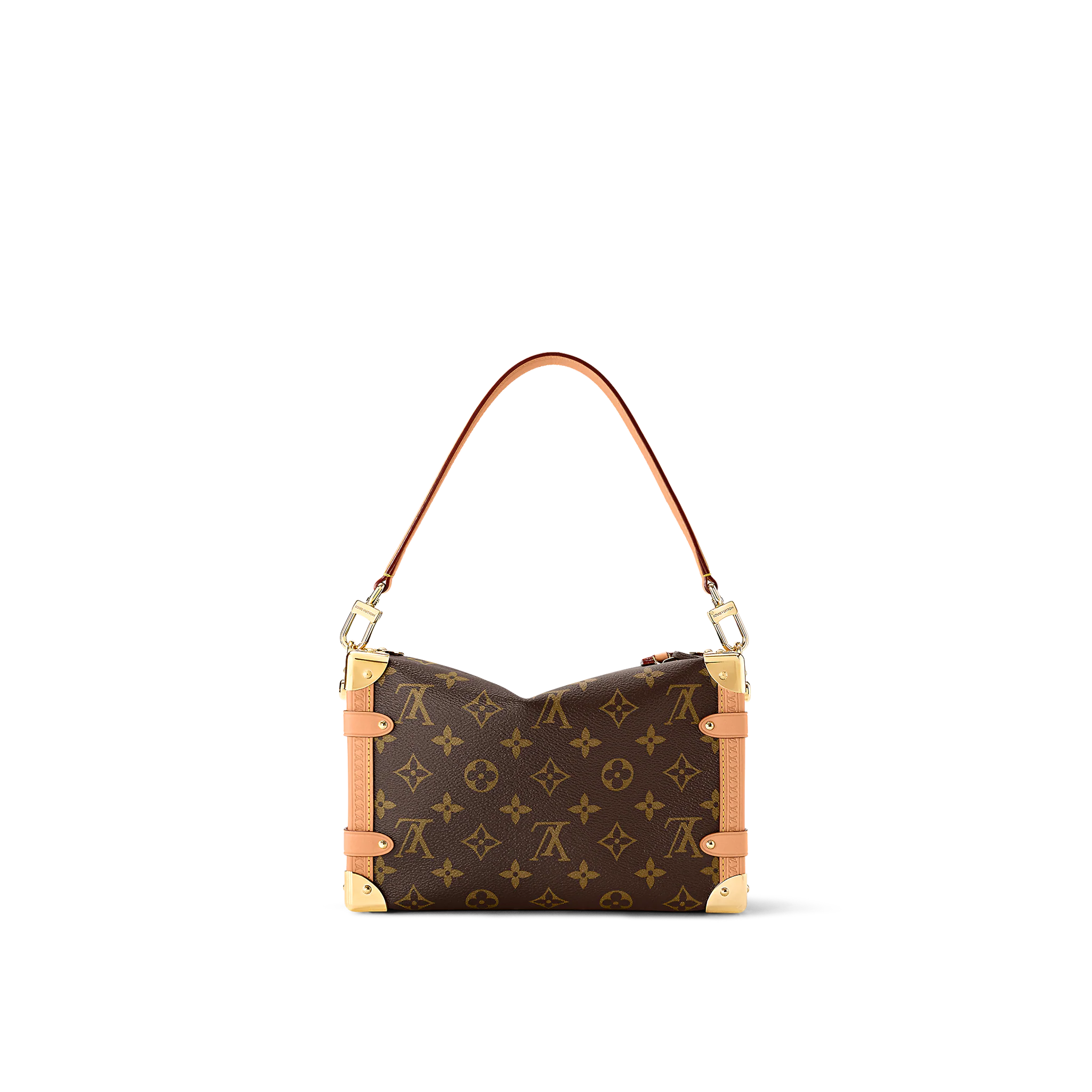 Returning to the House’s trunkmaking beginnings, Nicolas Ghesquière creates the Side Trunk PM handbag in Monogram canvas with leather trim. What strikes the eye is the singularity of the leather zip tab fitted with the iconic S-lock and the reinforced metallic corners. The wide top handle is removable as is the thin leather shoulder strap.