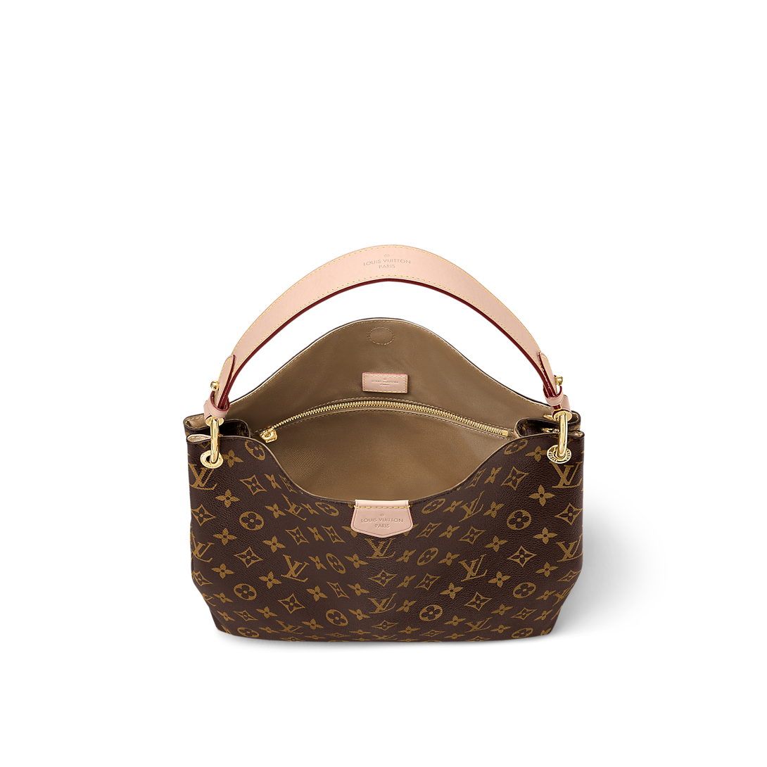 The Graceful PM hobo in classic Monogram canvas is a lightweight, roomy bag to carry every day. Natural cowhide leather detailing and golden hardware add a refined touch. The body-friendly design combines with a supple, flat handle for stylish and comfortable over-the-shoulder wear. The magnetic closure and zipped inside pocket keep belongings secure.
