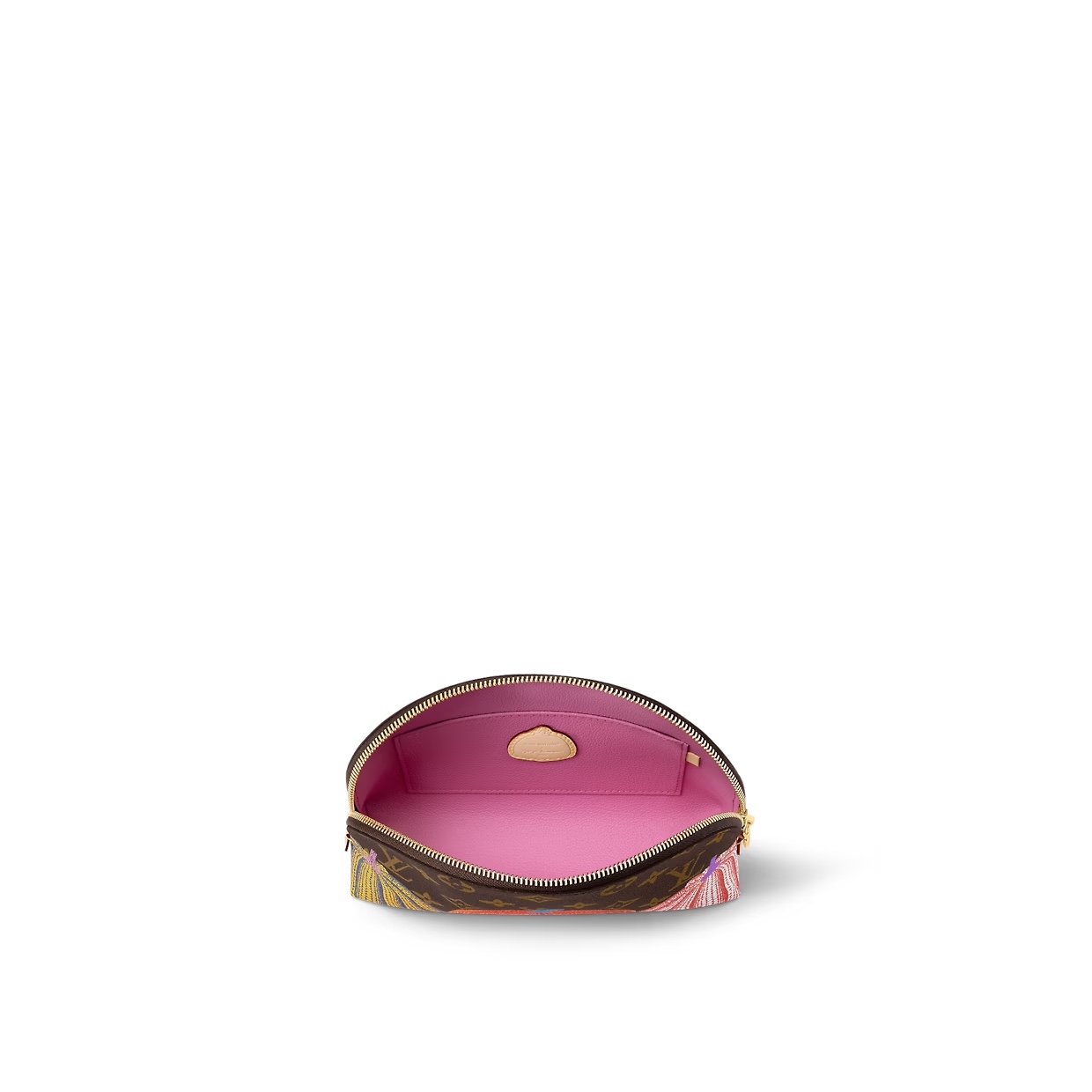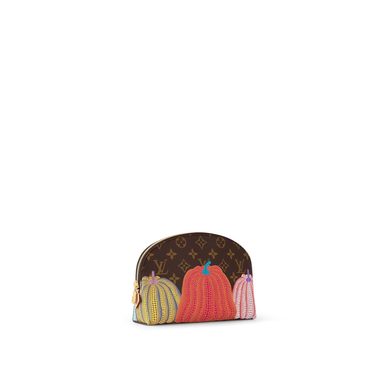 For the L x Yayoi Kusama collection, the LxYK Pochette Cosmetique GM pays homage to the work of the world-class Japanese artist with a print inspired by her emblematic pumpkins. Kusama uses pumpkins in her paintings, sculptures and installations as an expression of warmth and joyful optimism. For this cosmetics pouch, they appear in bright colors on Monogram canvas, adding a creative touch to an ultra-functional accessory.