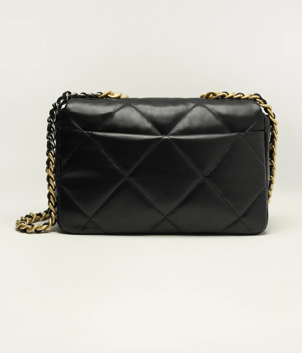 • CHANEL 19 Large Handbag Shiny Lambskin, Gold-Tone, Silver-Tone & Ruthenium-Finish Metal Black