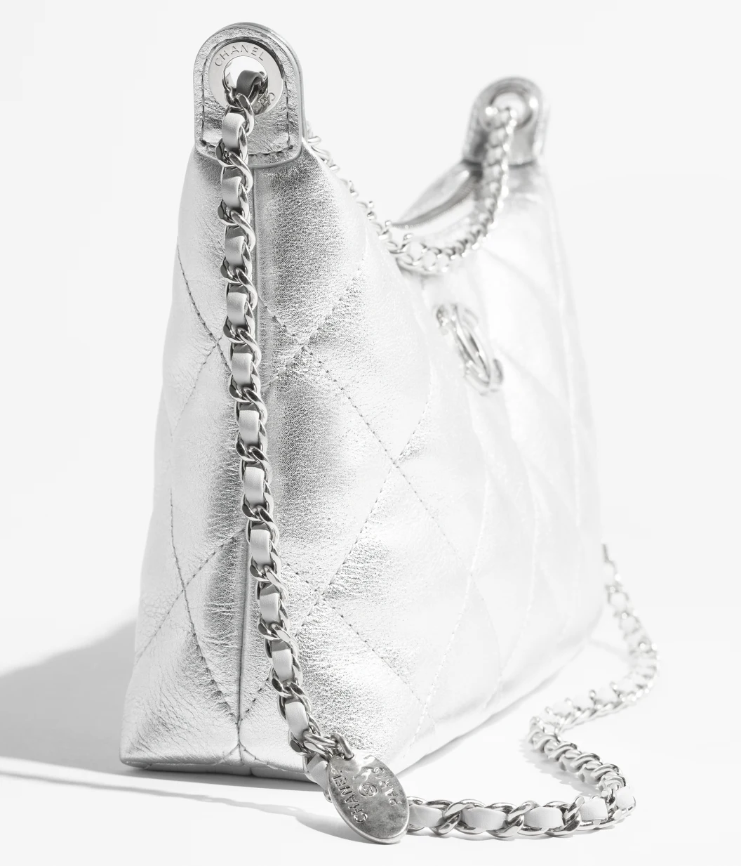 Hobo Handbag Metallic Calfskin & Silver-Tone Metal Silvery