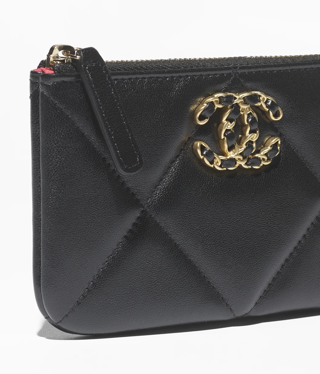 CHANEL 19 Mini Pouch Shiny Lambskin, Gold-Tone, Silver-Tone & Ruthenium-Finish Metal Black