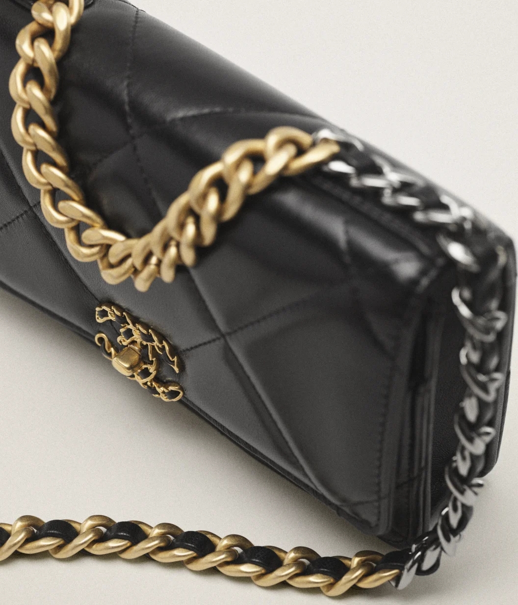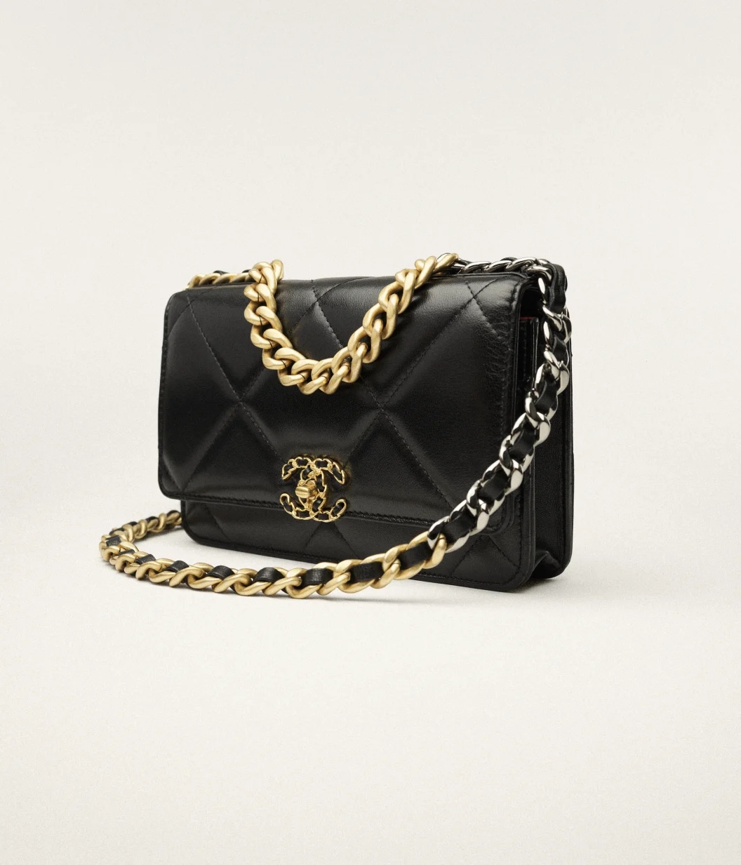 • CHANEL 19 WALLET ON CHAIN Shiny Lambskin, Gold-Tone, Silver-Tone & Ruthenium-Finish Metal Black