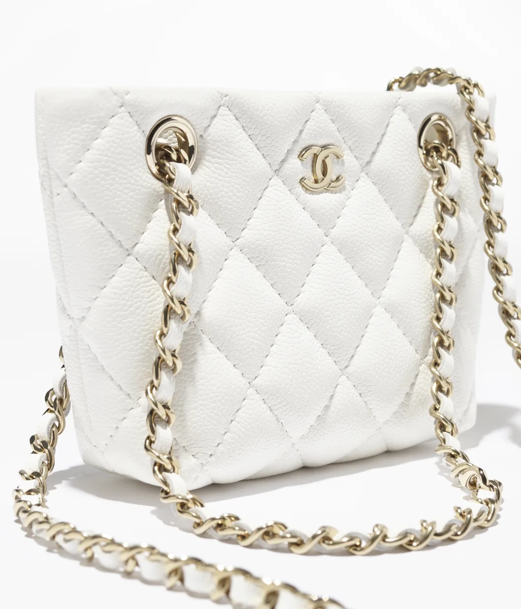 • CLASSIC CLUTCH WITH CHAIN Grained Shiny Calfskin & Gold-Tone Metal White