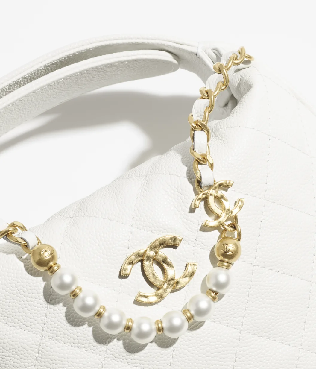 • Pouch Grained Calfskin, Imitation Pearl & Gold-Tone Metal White
