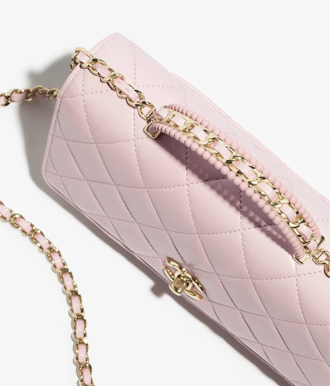 • WALLET ON CHAIN Lambskin, Imitation Pearls & Gold-Tone Metal Light Pink