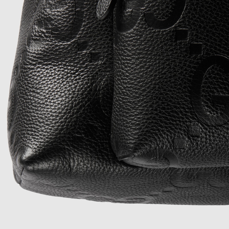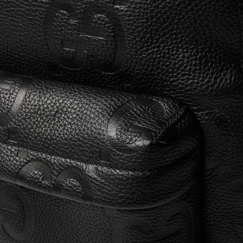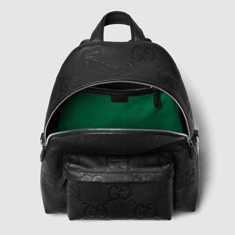 The jumbo GG design continues for Cruise 2025 with a new grainy texture. A reinterpretation of Guccio Gucci's initials, the motif is an evergreen of the House that appears prominently in maxi dimensions for an eye-catching logo feel. This backpack in the emblematic leather features multiple pockets and an additional D-ring to attach items.