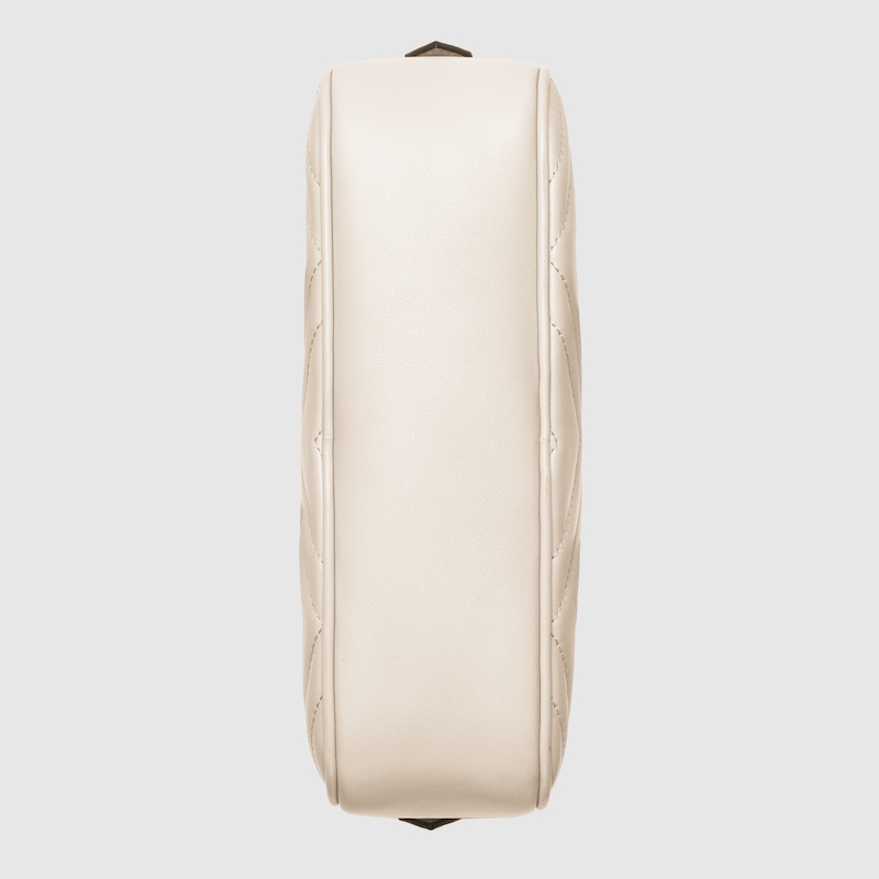 Inspired by the summer spirit and beach clubs on the Italian coast, this item is part of Gucci Lido. The GG Marmont small camera bag has a softly structured shape and a zip top closure with the Double G hardware. The chain shoulder strap has a leather shoulder detail. Made in matelassé leather with a chevron design and GG on the back.