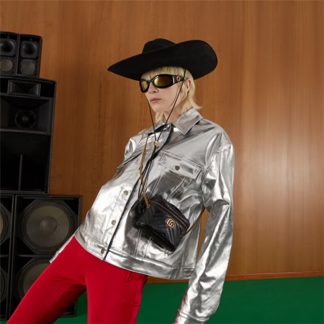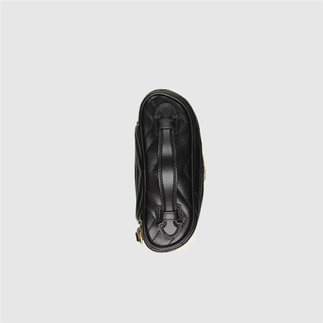 A zip around mini bag with a top handle is presented within the GG Marmont collection. Crafted from the line's signature matelass chevron leather in black, the rounded shape is enriched with the Double G detail. Featuring a detachable chain strap, the accessory can be styled in different ways.