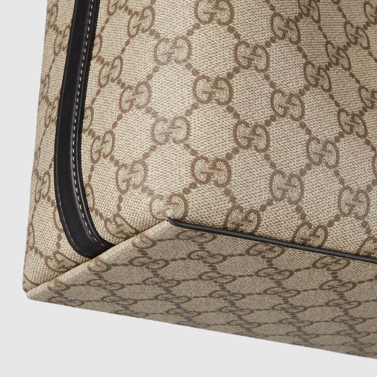 The new GG Emblem collection reinterprets the House’s history of elegance and craftsmanship. This small tote bag features numbered notches on the adjustable top handles, inspired by the equestrian world.
