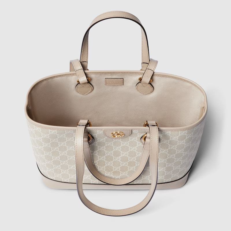 Inspired by the summer spirit and beach clubs on the Italian coast, this item is part of Gucci Lido. The Ophidia line is further elevated through new sizes and styles, including variations with top handles as well as shoulder straps, allowing for versatile wear. The signature Double G hardware completes this beige and white GG Supreme design.