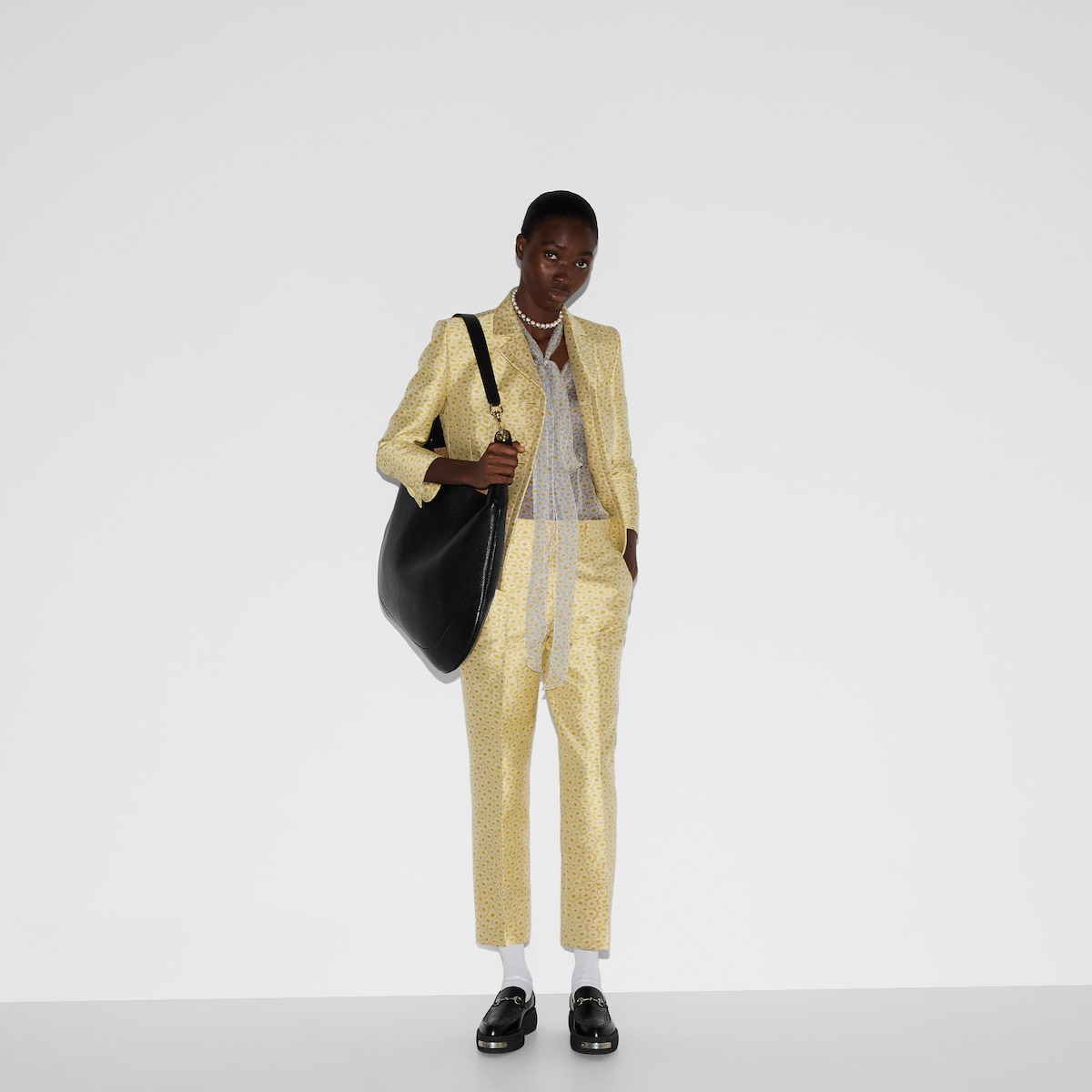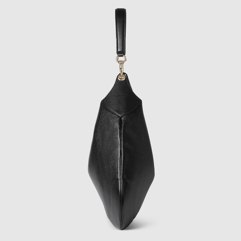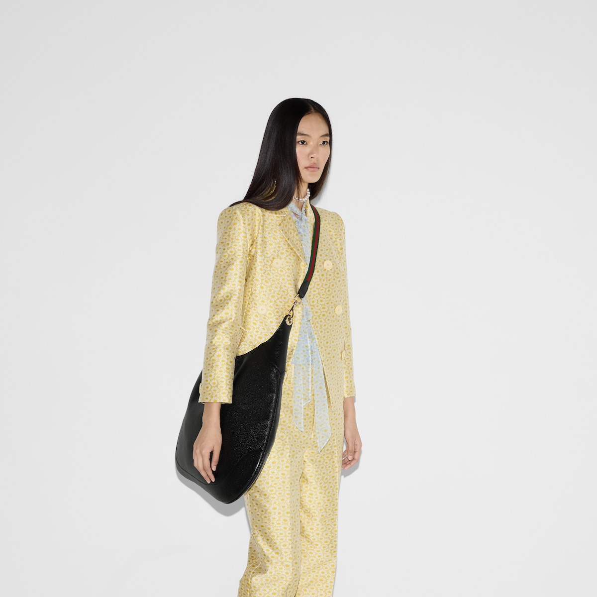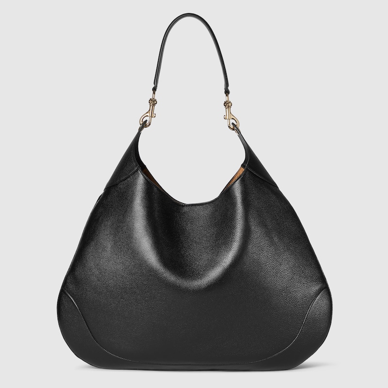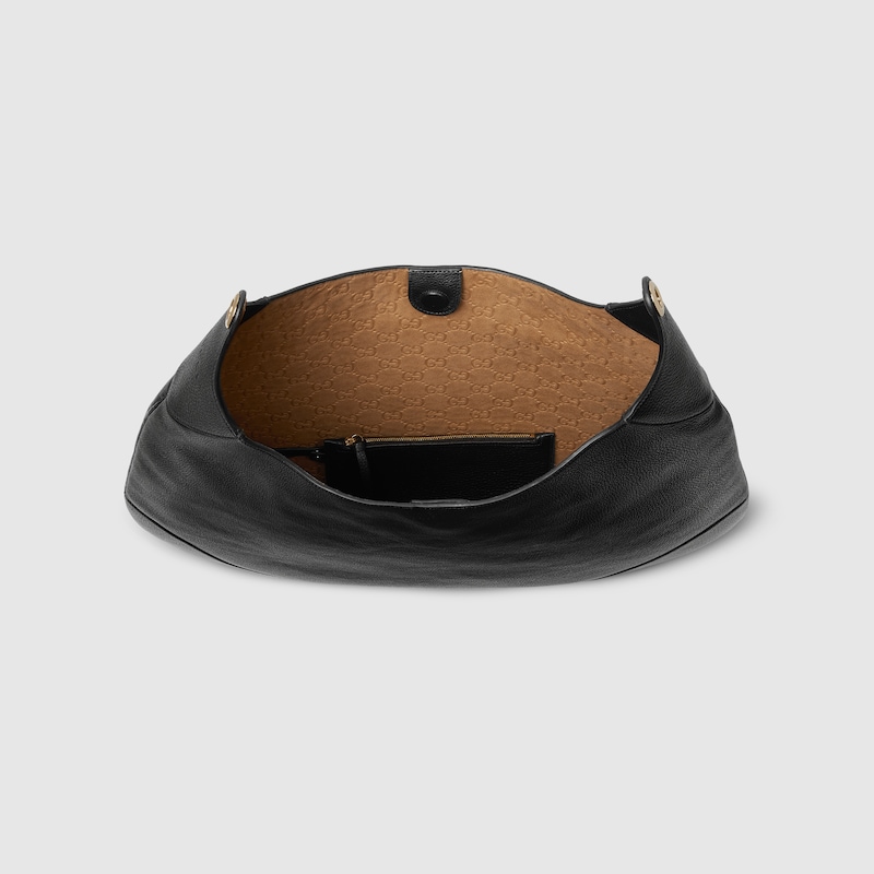 Introducing the Gucci B, which draws inspiration from a 1950s archival style. This shoulder bag, embodying the essence of its mid-20th century design origins, is crafted from soft grainy leather which drapes on the body.