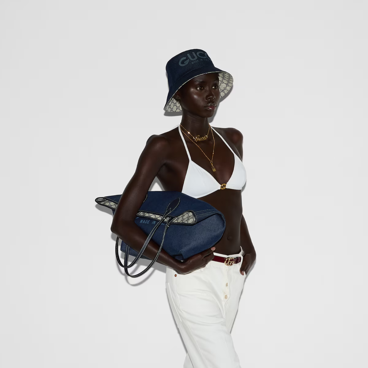 • Dark blue denim on one side, beige and blue GG Supreme on the other