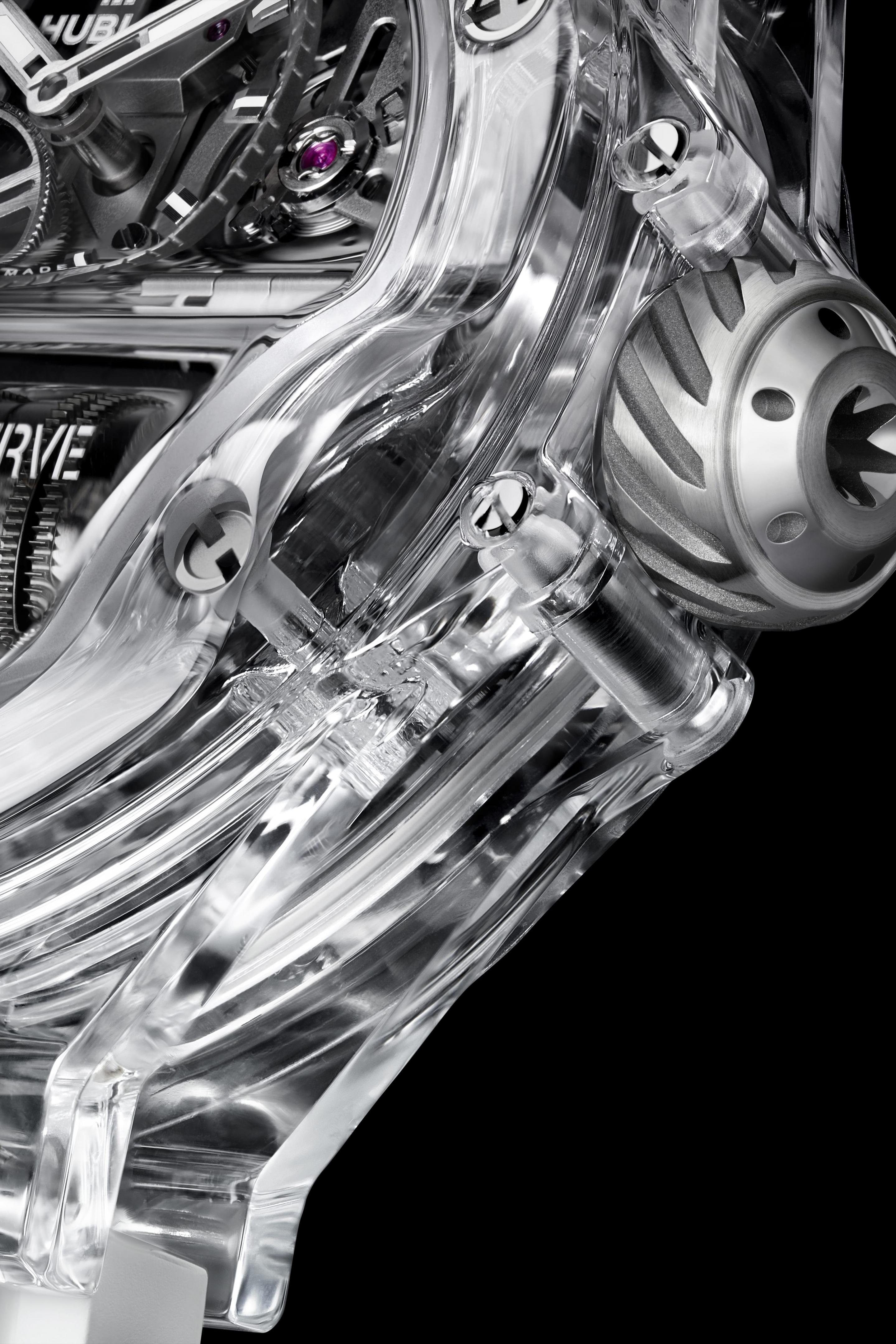 Unworn Hublot Big Bang MP-11 POWER RESERVE 14 DAYS SAPPHIRE 911.JX.0102.RW. 45 mm, Sapphire dial, Polished Sapphire Crystal case, Sapphire with Anti-reflective Treatment crystal, Polished Sapphire Crystal with 6 H-shaped Titanium Screws bezel, HUB911 calibre, Manual-winding Skeleton Power Reserve Movement with 7 Series-coupled Barrels and Power Reserve Display Roll, 14 days power reserve, White Structured Lined Rubber Straps with Black Ceramic and Black-plated Titanium Deployant Buckle Clasp. Water resistant to 30 m.