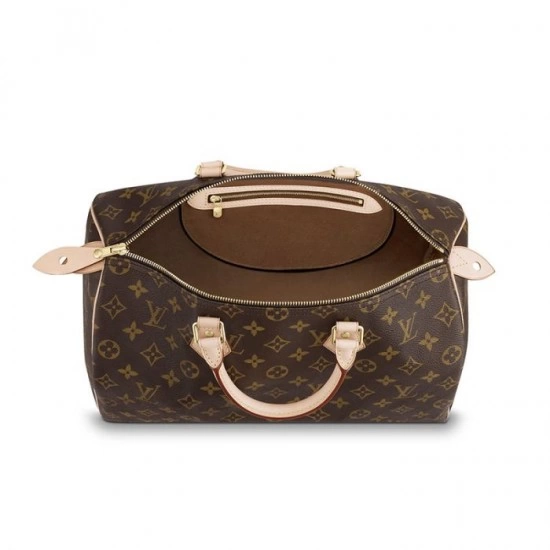 Made from classic Monogram canvas, the Speedy 35 is a stylish handbag for both travel and daily use. Launched in 1930 as the “Express” and inspired by that era’s rapid transit, today’s updated Speedy remains a timeless House icon, with its unmistakable silhouette, rolled leather handles and engraved, signature padlock.