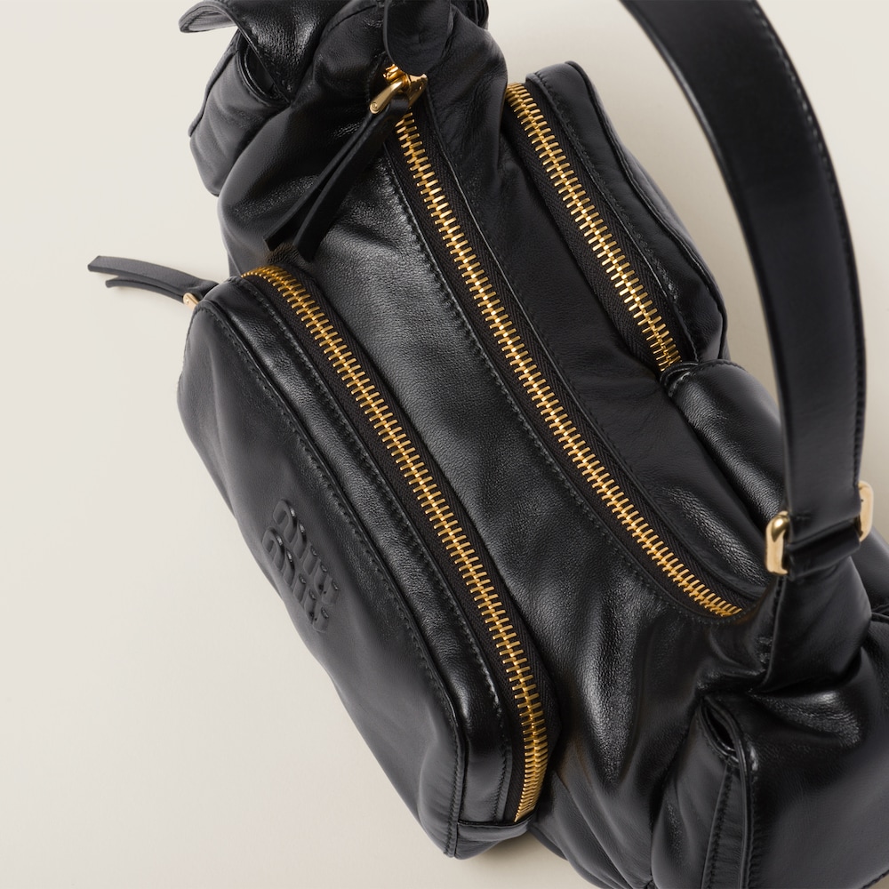 This nappa leather Pocket bag is characterized by an extremely contemporary, cosmopolitan, and captivating design. The multiple pockets border between function and decoration, while the lettering logo adds an iconic and distinctive note. The gold-tone hardware completes the design with shiny touches.