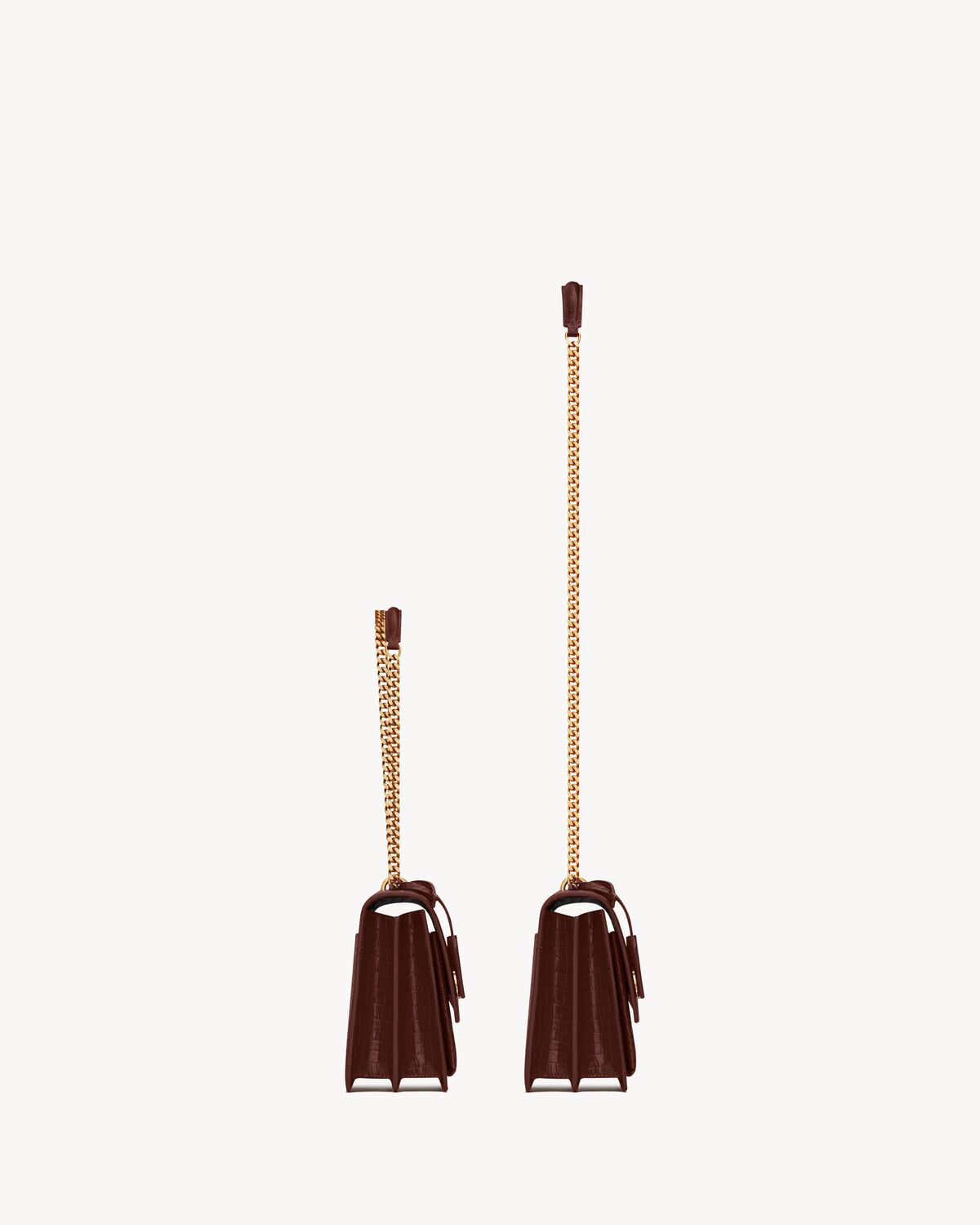 SLIDING CHAIN CAN BE WORN ON THE SHOULDER OR CROSSBODY.